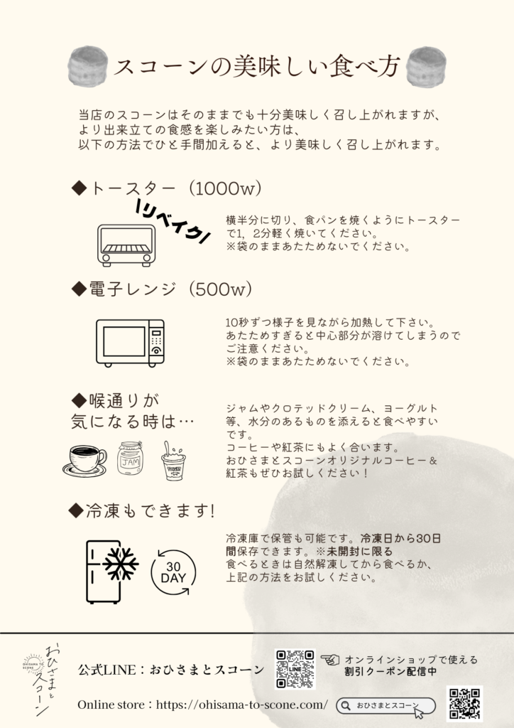 この度は、「おひさまとスコーン」をお買い上げいただき誠にありがとうございます。